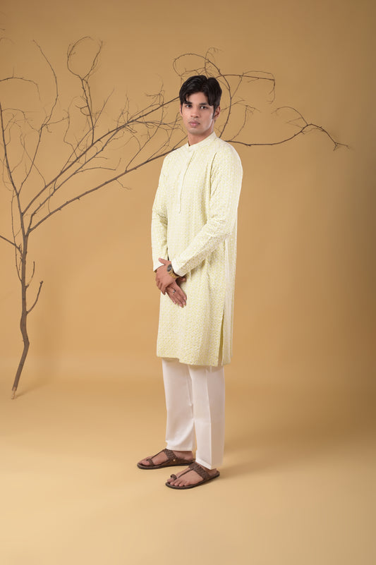 Light-Green Embroidered Cotton Kurta-Pyjama Set for Men